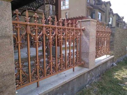 我們?cè)谶x擇鋁藝庭院門的時(shí)候應(yīng)該注意以下幾點(diǎn):, 不要經(jīng)常用有水漬(或其他溶液)的手打開門鎖,以免其變色。在打開或轉(zhuǎn)動(dòng)門鎖把手時(shí),不要用力過猛,這樣會(huì)降低門鎖的使用壽命。合頁、門鎖等常用五金,一旦松動(dòng),應(yīng)立即擰緊.當(dāng)門鎖打開不正常時(shí),可在鎖孔內(nèi)加入適量的鉛筆沫,切記用食用油等物品潤(rùn)滑。, 5、堅(jiān)固、耐用、連接牢靠、結(jié)構(gòu)性好。, 使用鋁門時(shí),請(qǐng)勿將過重的物品懸掛在門扇上,或避免尖銳物品刻碰,刮痕,開閉時(shí),請(qǐng)勿經(jīng)常用力過猛或打開角度過大,以免損壞鋁門。, 高級(jí)鐵藝制作的表面裝飾效果漆色彩豐富,多采用進(jìn)口漆手繪,既古樸典雅,又時(shí)尚流行.最經(jīng)典的表面裝飾效果漆有青古銅色、紅古銅色、古銅金、黑色、銅金邊、白色金邊等。, 大家在使用一種產(chǎn)品時(shí)總會(huì)找一些相同的類型產(chǎn)品作一些比較,到底哪一種合適。護(hù)欄也是一樣,現(xiàn)在生產(chǎn)護(hù)欄的材質(zhì)很多,就拿我們現(xiàn)在常見的鋅鋼護(hù)欄和鋁合金護(hù)欄,這二種產(chǎn)品哪一種好呢?